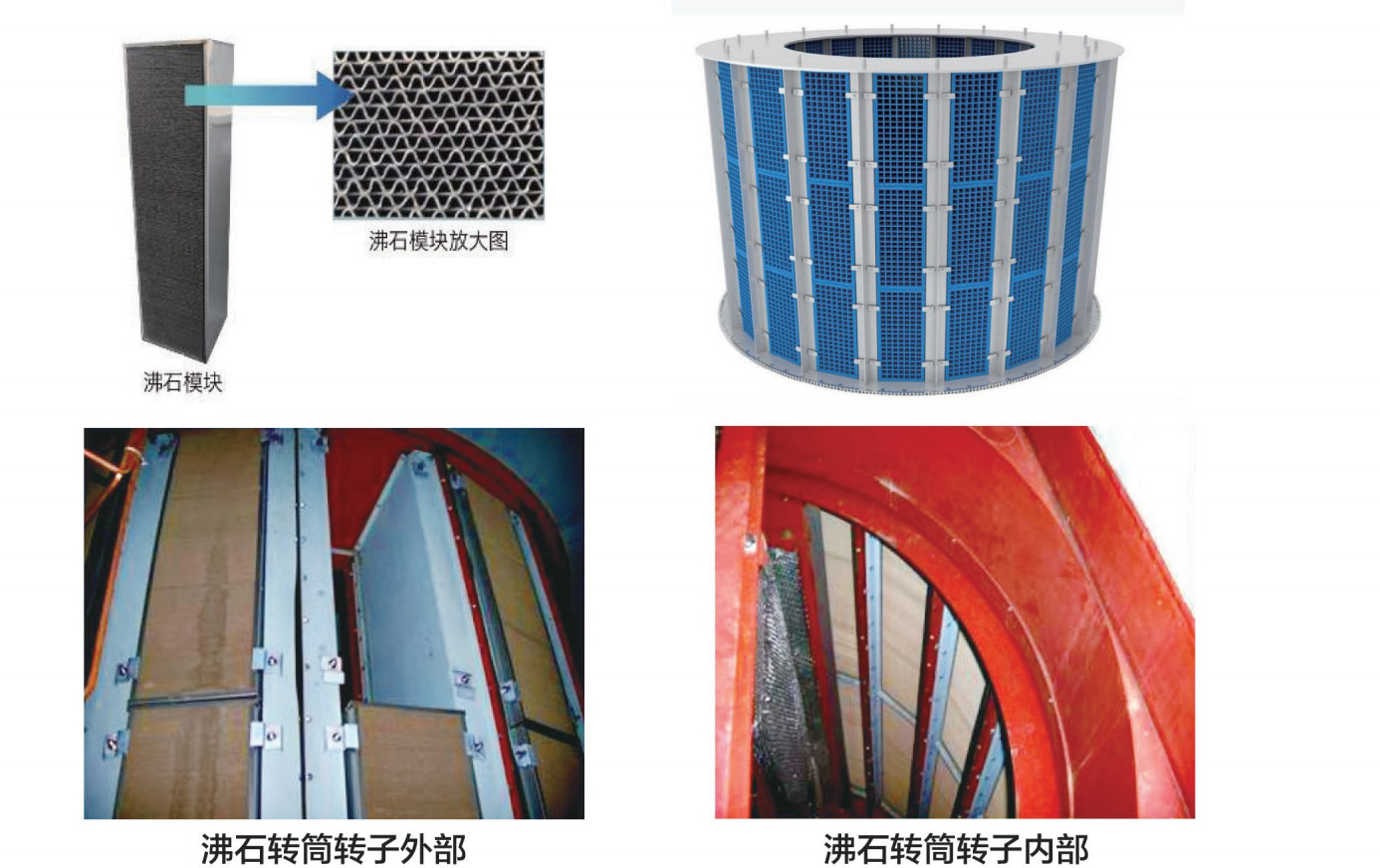 沸石濃縮轉筒被分為吸附區、脫附區、兩個功能區。