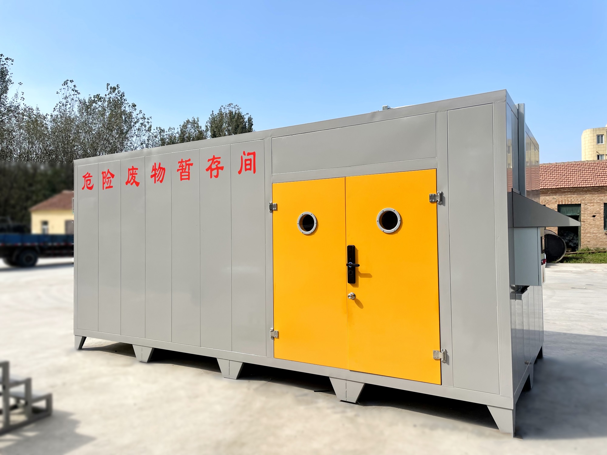 (6)不相容的危險廢物必/須分開存放,并設(shè)有隔離間隔斷。目前,工業(yè)企業(yè)大部分都還是使用企業(yè)內(nèi)部的普通房間(或是車間內(nèi)隔開的區(qū)域)來作為危廢暫存場地,場地基本無做防護處理,且大多數(shù)企業(yè)的危廢均無密封包裝,成為廠區(qū)的廢氣無組織擴散源。且企業(yè)現(xiàn)有的危廢暫存間不具備防火、防腐蝕等功能,如果稍有不慎,那些瓶裝、罐裝的易燃的氣體、液體就會發(fā)生傾倒、泄漏,易釀成泄毒、火災(zāi)、爆炸等事故,后果不堪設(shè)想,因此急需設(shè)計一種專用的工業(yè)企業(yè)危險廢棄物暫貯存或暫貯存的箱式可移動危廢倉庫。